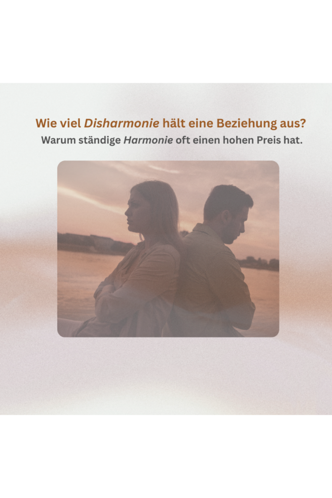 Wie viel Disharmonie darf eine Beziehung haben? Wir alle mögen Harmonie. Ein freundlicher Ton.Ein gutes Gespräch.Ein Gefühl von Ruhe miteinander. Doch Beziehungen zwischen Menschen sind lebendig – und Lebendigkeit bringt Bewegung mit sich. Unterschiedliche Meinungen.Unterschiedliche Bedürfnisse.Unterschiedliche Wege. Viele Menschen versuchen, diese Unterschiede möglichst klein zu halten. Besonders Frauen tragen oft
